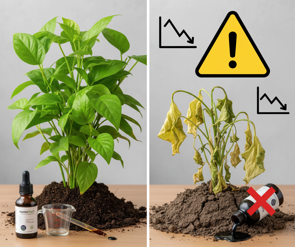استفاده بیشتر از مقدار توصیه شده باعث می شود گیاه نتواند عناصر غذایی را به طور مؤثر جذب کند و اثر مثبت هیومیک اسید کاهش یابد. مصرف دقیق و متعادل، هم رشد گیاه را بهتر کرده و هم از هدر رفتن محصول جلوگیری می کند.