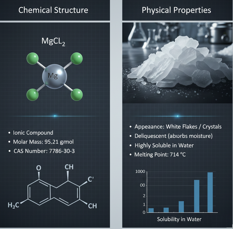 کلرید منیزیم (MgCl₂) یک محصول صنعتی همه کاره است که در صنایع مختلف کاربردهای گسترده ای دارد. این ماده به دلیل خواص فیزیکی و شیمیایی ممتاز، انتخابی هوشمندانه برای پروژه های صنعتی، ساختمانی، کشاورزی و تصفیه آب به شمار می رود که با استفاده از آن، فرآیندها سریع تر، ایمن تر و اقتصادی تر اجرا می شوند.